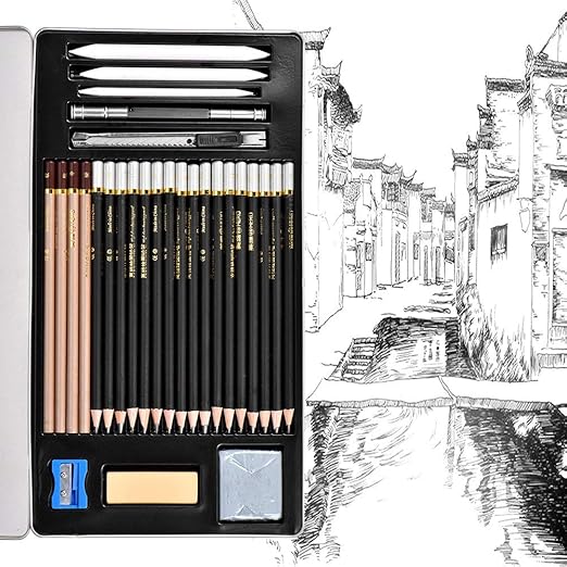 Towinle Bleistift Set 30 Teilige Skizzieren Zeichnen Stifte Bleistifte Zum Skizzieren Und Zeichnen Professional Skizzierstifte Set Mit Zeichenkohle Papierwischer In Eisenkiste Amazon De Kuche Haushalt
