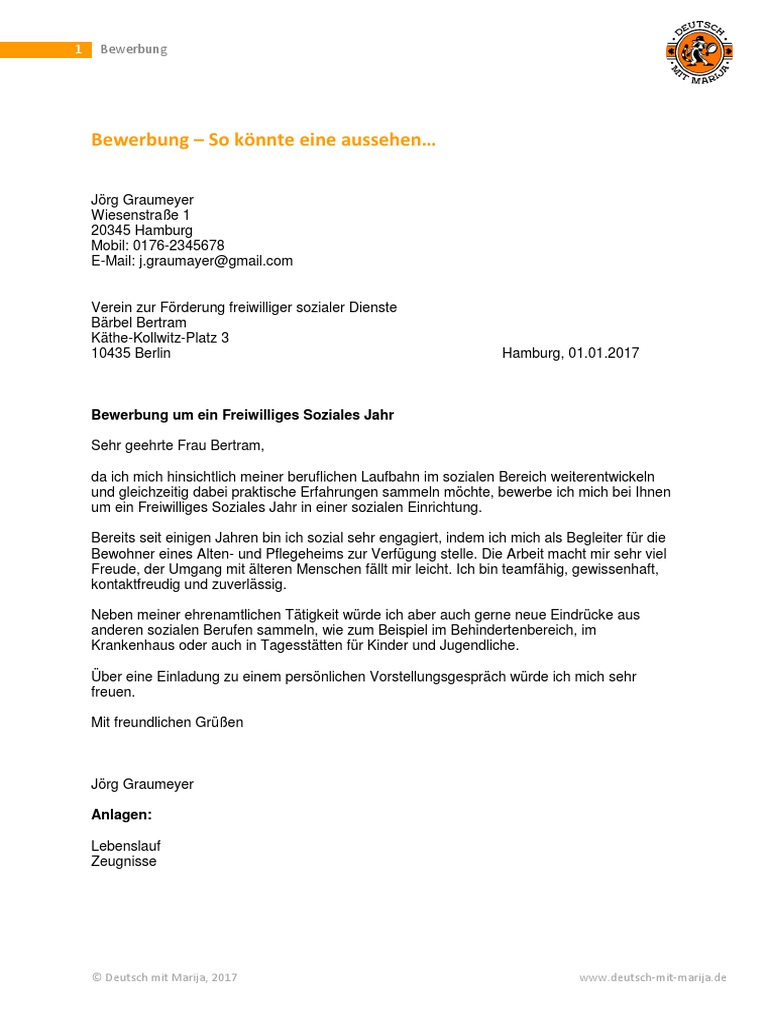 Bewerbung Fjr Freiwilliges Soziales Jahr Vorlage By Charlesyjyq Issuu